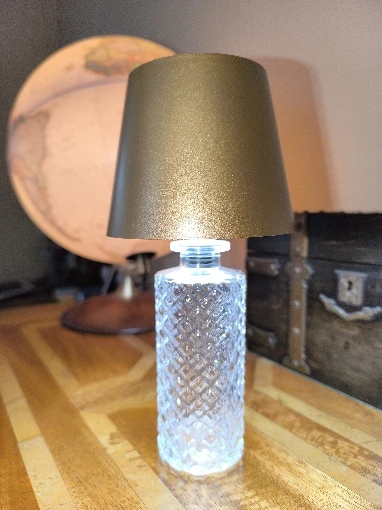 Glissez son insert conique dans un goulot, posez l’abat-jour : en quelques secondes, votre bouteille préférée devient une lampe d’ambiance chic et chaleureuse.
